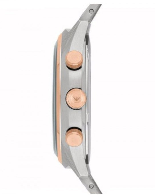 Emporio Armani Zeta Chronograph Quartz White Dial Two Tone Steel Strap Watch For Men - AR1998