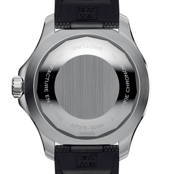 - Breitling calibre 17, COSC Certified, 28,000 vph (4Hz), 26 jewels, approximate power reserve of 38 hours.