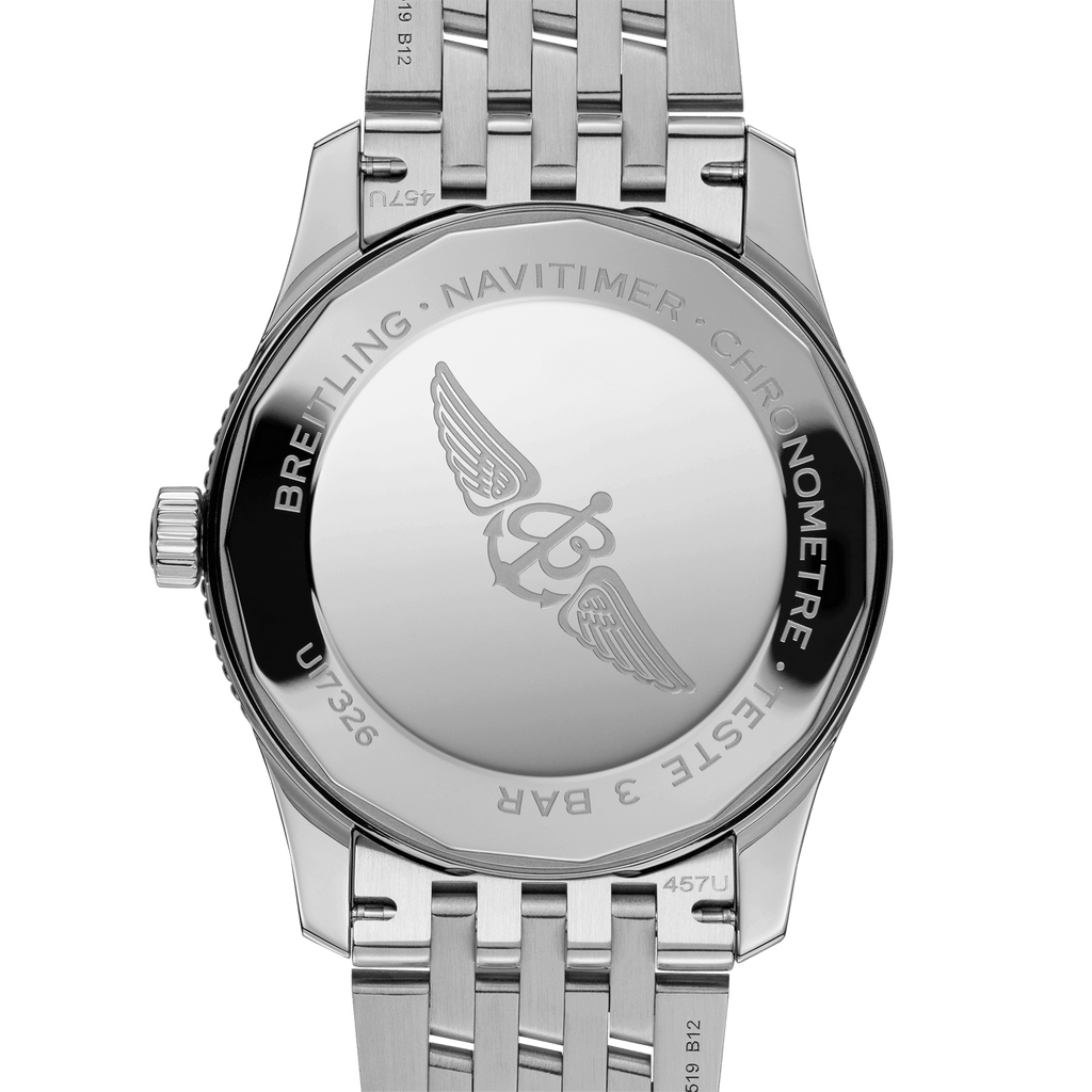 Refined and elegant, the Navitimer Automatic 41 combines the historic appeal of a true icon with the sophistication of a contemporary timepiece. Available in a variety of materials including stainless steel and 18k red gold, the 41 mm case features a beaded bezel and a range of elegant dial colors. Offered either with a matching bracelet or alligator strap that fits both a stainless-steel pin or folding buckle, the Navitimer Automatic 41 is powered by the Breitling Caliber 17, a COSC-certified chronometer.