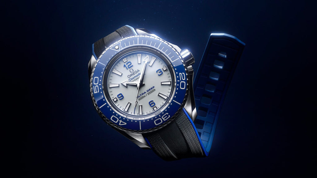 The watch is set on rubber strap with blue lining and an O-MEGASTEEL buckle, while on the caseback's Grade 5 titanium medallion, there is a laser-engraved Sonar emblem with the iconic OMEGA Seahorse at its centre. Inside, the watch is driven by the OMEGA Co-Axial Master Chronometer Calibre 8912.