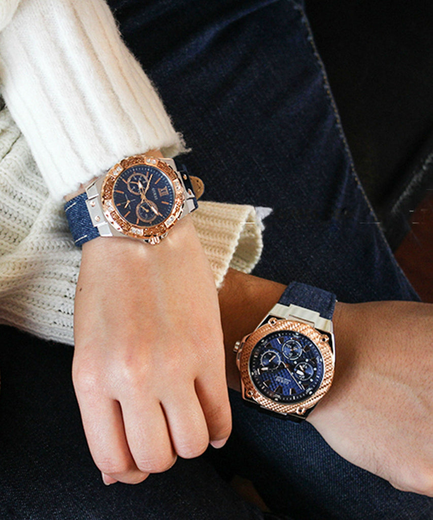 Guess Legacy Analog Blue Dial Blue Denim Strap Watch for Men - W1058G1