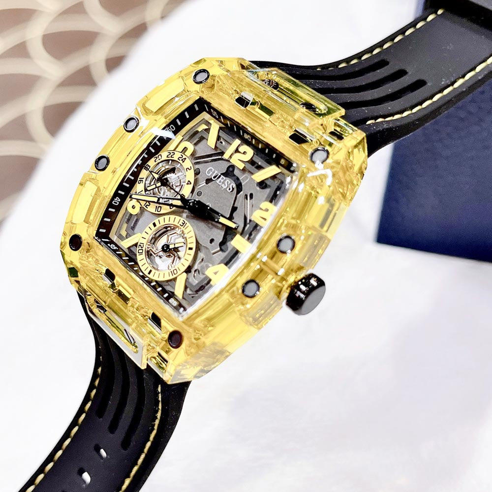 Guess Phoenix Chronograph Black Dial Black Rubber Strap Watch for Men - GW0499G2
