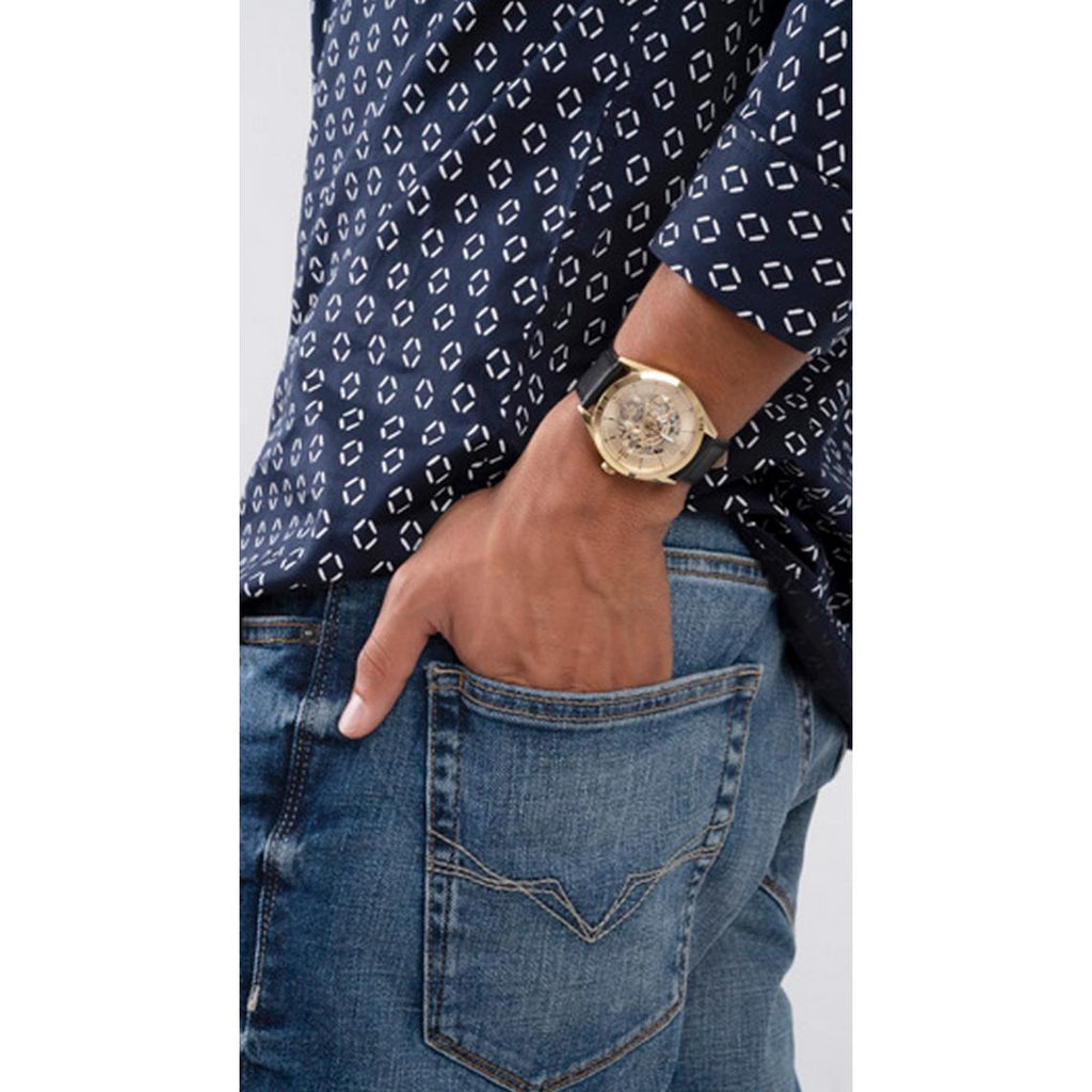 Guess Tailor Gold Dial Black Leather Strap Watch for Men - GW0389G2