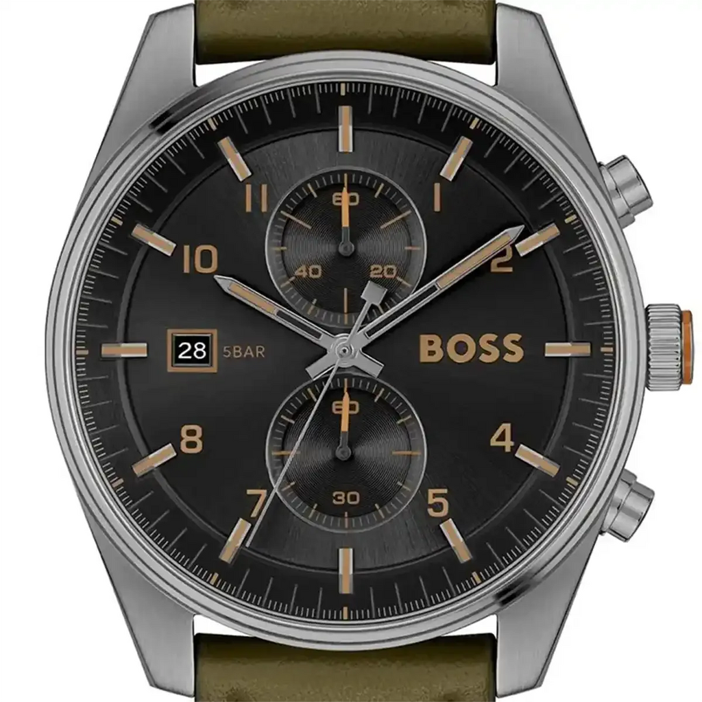 Hugo Boss Skytraveller Chronograph Black Dial Green Leather Strap Watch for Men - 1514148 Buy Now By Hugo Boss