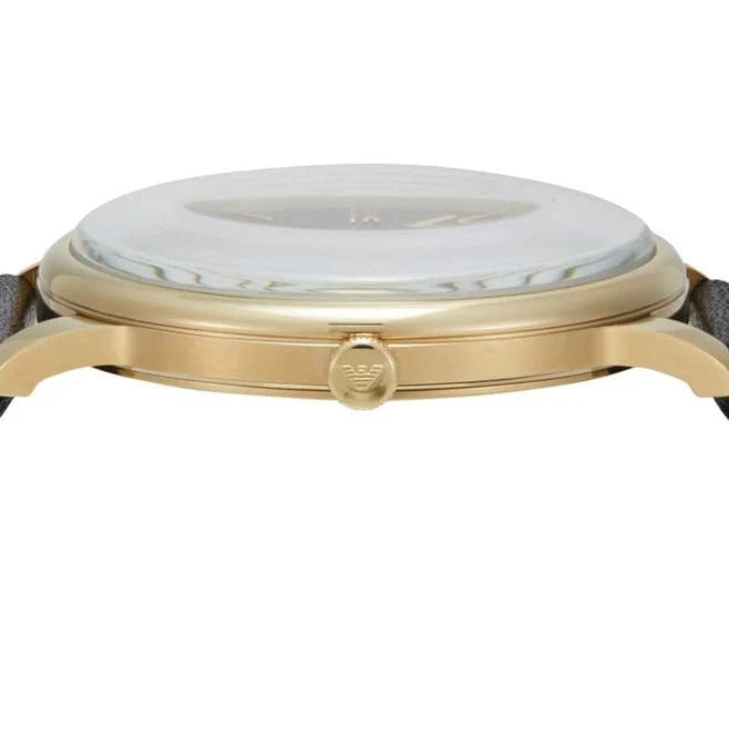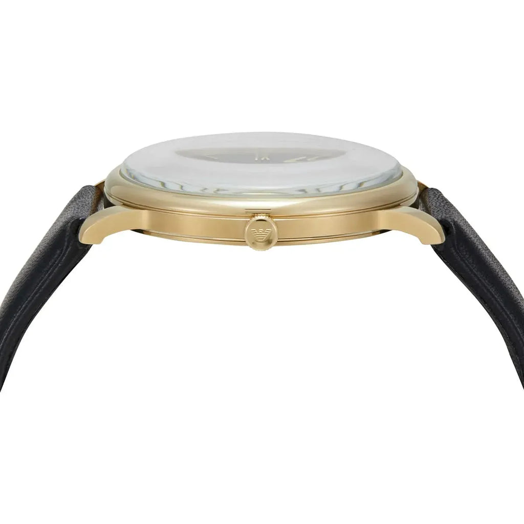 The Emporio Armani AR11601 Minimalist Watch is a perfect blend of elegance and simplicity. Featuring a 41mm gold-tone stainless steel case and a striking green dial, this watch stands out as a refined accessory for any occasion. The black leather band, with a 21mm width, adds a classic touch, while the reliable quartz movement ensures precise timekeeping. Designed with a water resistance of up to 50 meters and equipped with a secure buckle clasp, this timepiece is as practical as it is stylish, making it an ideal choice for the modern gentleman.