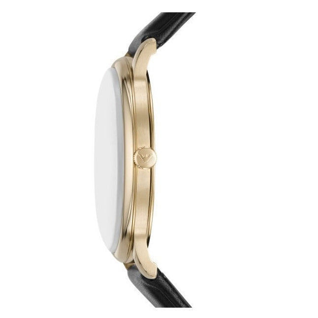 Emporio Armani Minimalist Green Dial Black Leather Strap Watch for Men - AR11601