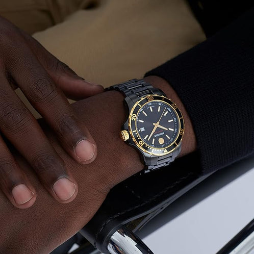 Water resistance up to 200 meters makes this watch more than just a daily accessory. It is fit for your swimming or snorkeling. The Movado Series 800 shifts effortlessly from professional settings to leisure activities, so you can enjoy it during all parts of the day in your varied lifestyle. You can rely on this watch to keep you timely and stylish, regardless of the setting. It promises reliability and aesthetic appeal in one package. This is a watch you don’t want to leave out of your ensemble.