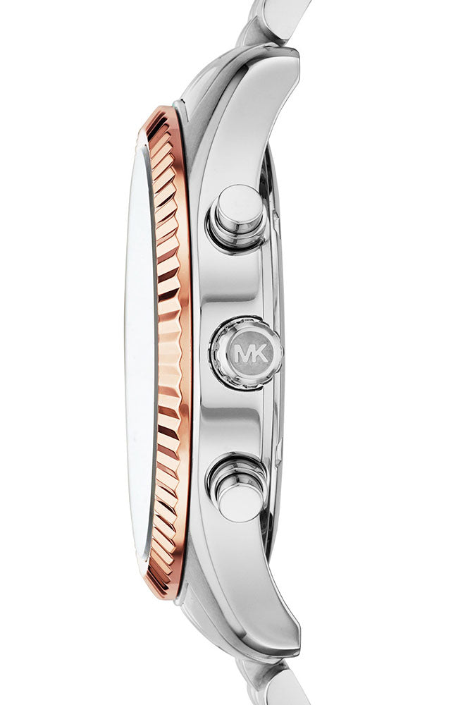 Michael Kors puts a twist on the traditional stainless steel chronograph with elegant brown and rose gold-tone details for this attractive Lexington watch.
