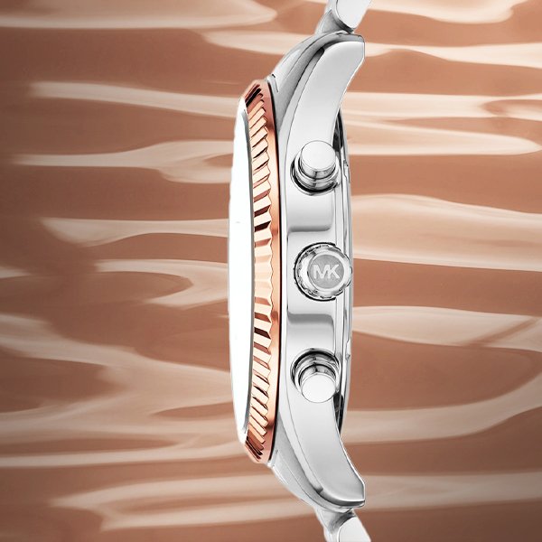 Designed with the aspirational man in mind, MK's Lexington watch brings sleek and streamlined to a whole new level. The beveled two-tone bezel and bracelet strap provide tactile texture, while the date function and chronograph dials complete a dynamic piece.