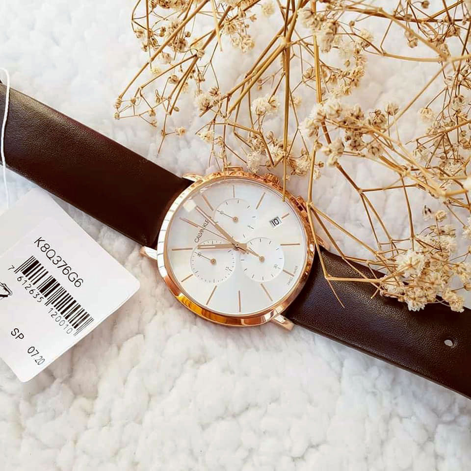 Calvin Klein Posh Chronograph White Dial Brown Leather Strap Watch for Men - K8Q376G6 Buy Now By Calvin Klein