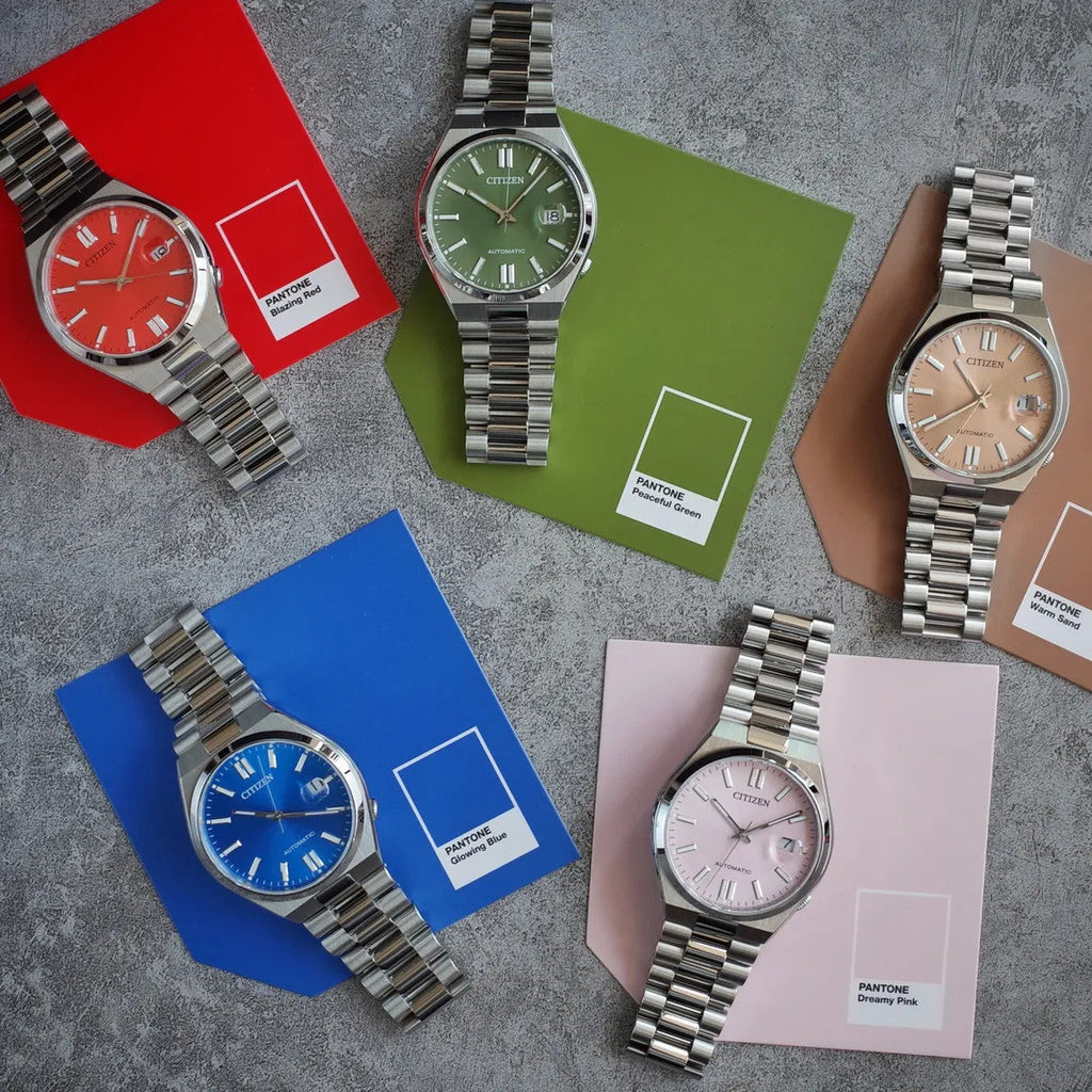 One that must be considered is the Citizen Tsuyosa Automatic NJ015 Series. Citizen Mechanical NJ0158-89L Pantone Colors Collaboration. This collection is characterized by a dial with attractive colors and a combination of integrated bracelets, a favorite of all watch enthusiasts. Even more attractive with the exclusive collaboration collection between Citizen Tsuyosa and Pantone.
