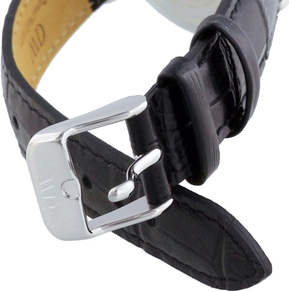 Daniel Wellington's only time from the classic petite collection. Reading model with 32mm dimension case, black dial. Silver watch with silver case, and black and thickness of 14 mm in leather case. Water resistance is 3 atm. The reference is dw00100179