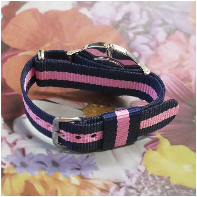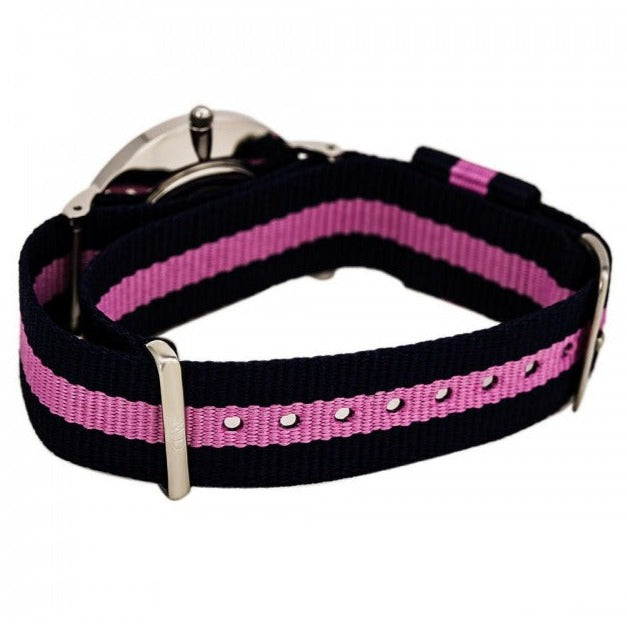 Designed specifically to be noticed, but always discreet, the Classic Winchester is a favorite of our fans. The classic dark blue stripes, divided by a single line of bright pink, are the perfect mix of elegance and exuberance. This very thin (6mm) Daniel Wellington watch can adapt to any occasion.