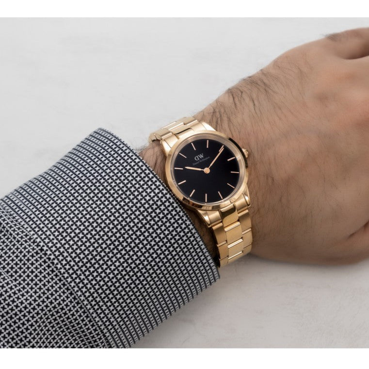The distinctive and sculptural lines of the raised midpiece blend effortlessly with the watch case, as our signature twelve index dial takes on a renewed, modern silhouette. The Iconic Link is available in polished stainless steel (316L) with a vibrant silver finish or with refined rose gold plating. The link bracelet can be adjusted for a perfect fit at your local watchmaker or Daniel Wellington store.