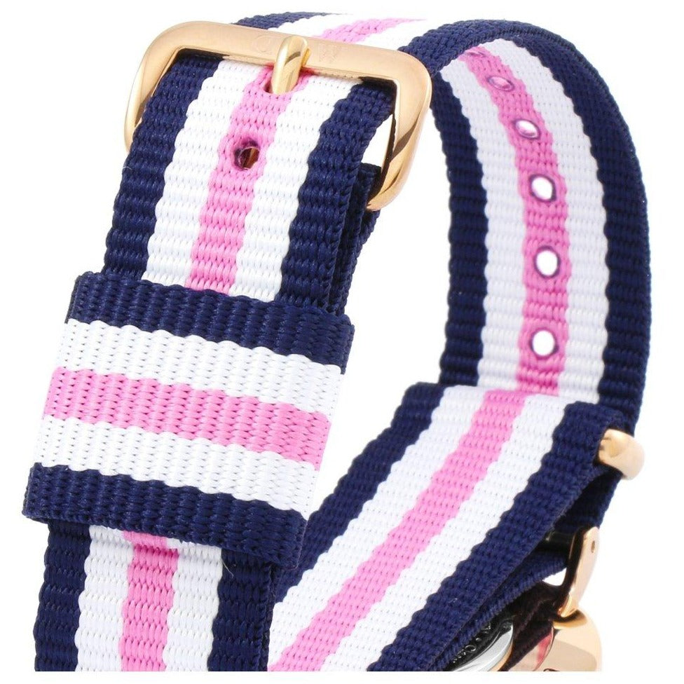 Daniel Wellington Watch Classic 36 Southampton DW00100034. Ultra thin casing, eggshell white dial and perfectly round design. When you add a pink, white and blue NATO band, you get a watch that is fun, minimalistic, classy and elegant all at the same time.