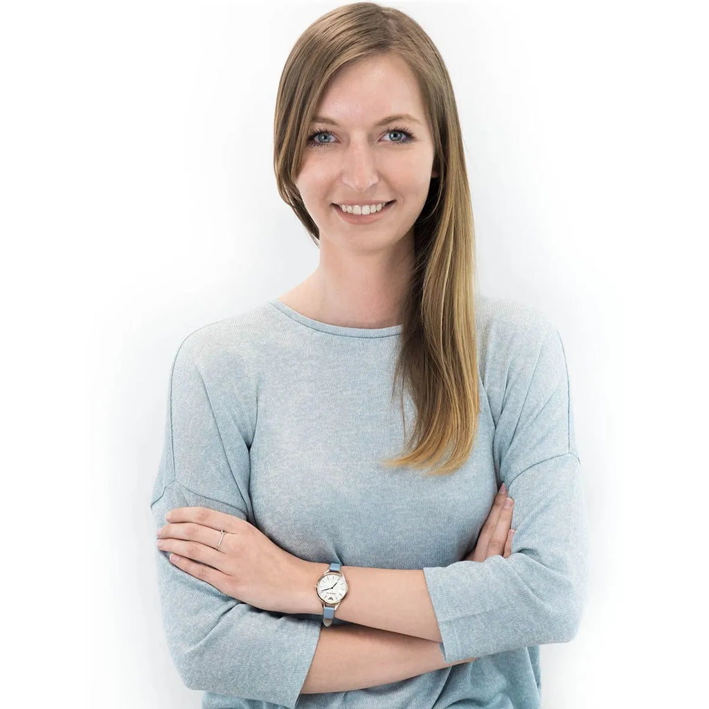 Emporio Armani Aurora Quartz Mother of Pearl White Dial Blue Leather Strap Watch For Women - AR11109