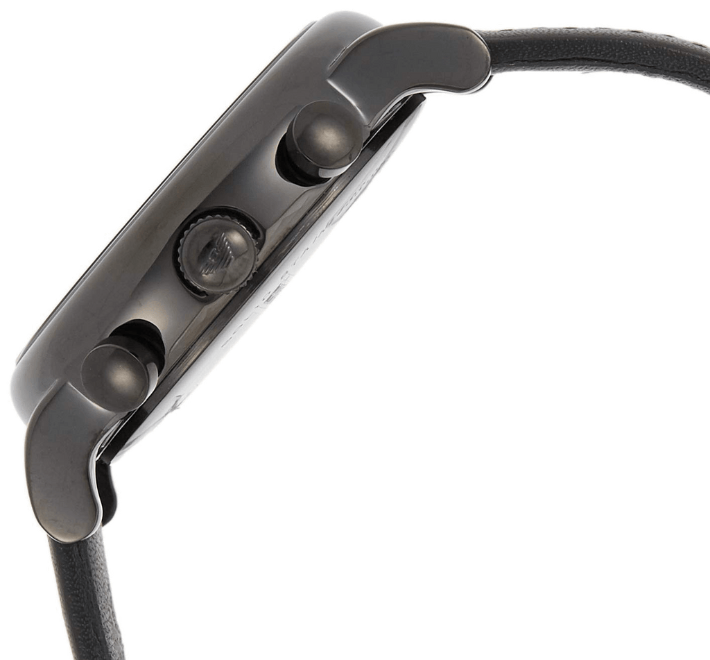 43mm x 11mm Black PVD Plated Stainless Steel Case. Solid Caseback.