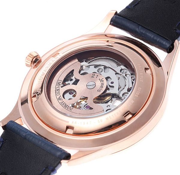 Emporio Armani Meccanico Automatic White Dial Blue Leather Strap Watch For Men - AR1947