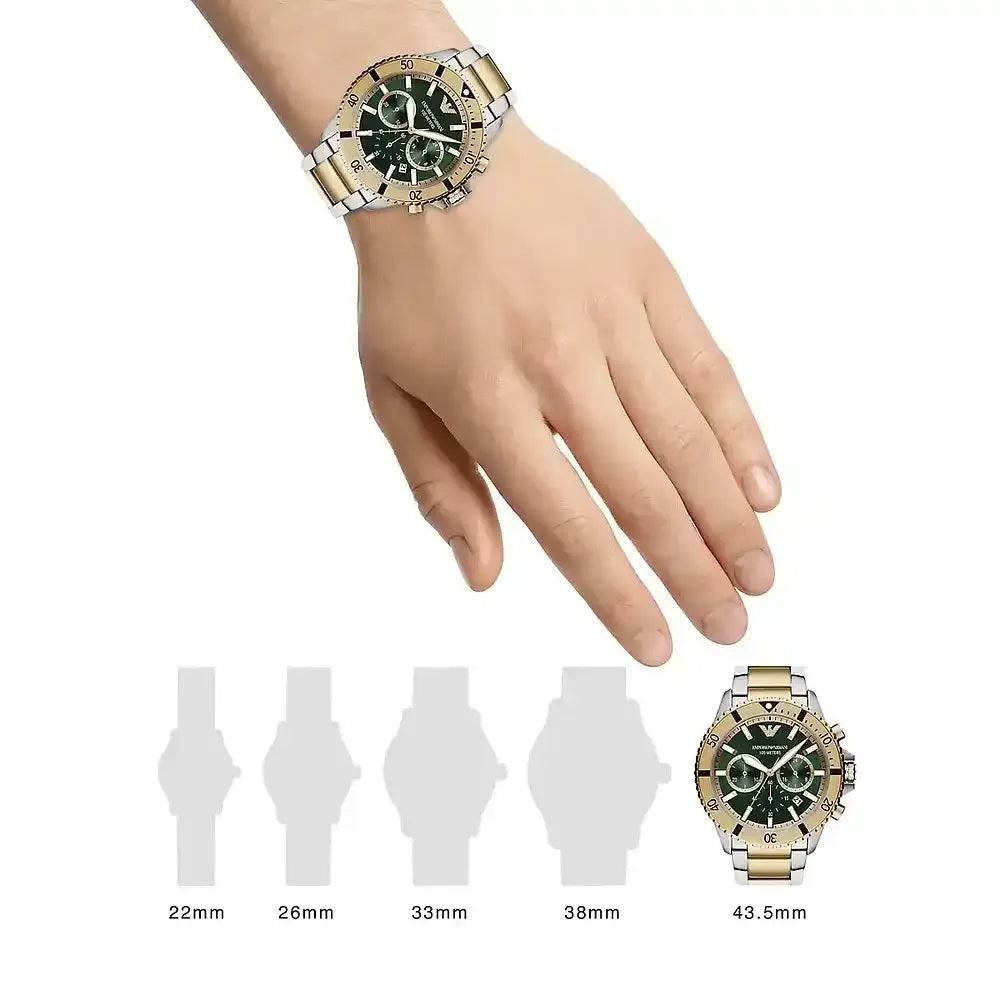 Emporio Armani Sea Explorer Chronograph Green Dial Two Tone Steel Strap Watch for Men - AR11586 Buy Now By Emporio Armani