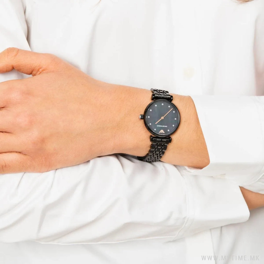 Emporio Armani Gianni T-Bar Quartz Black Mother of Pearl Dial Black Steel Strap Watch For Women - AR11268 Buy Now By Emporio Armani