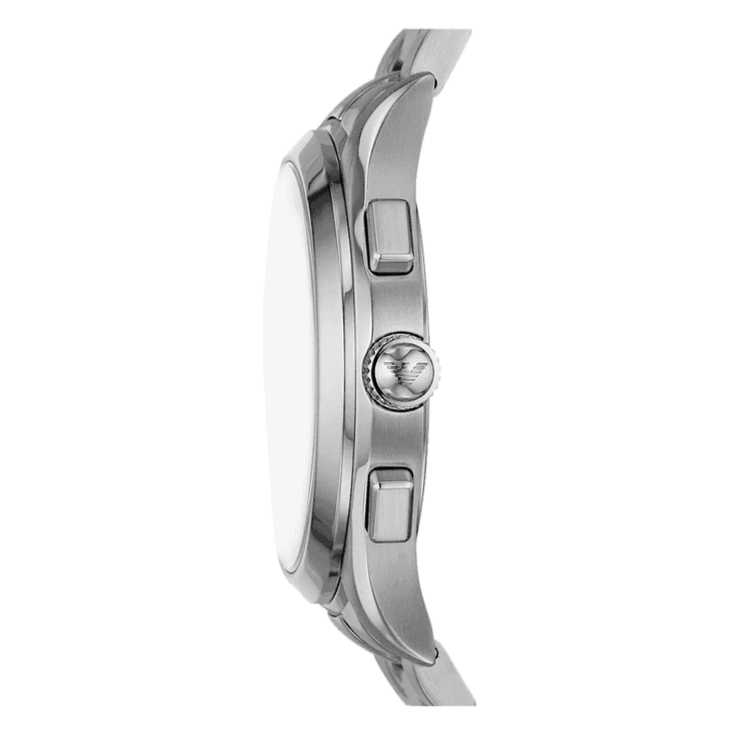Equipped with chronograph movement, it ensures precise timekeeping, a testament to its superior engineering. Reflecting Armani's commitment to sustainability, this watch is made from at least 50% recycled stainless steel for both the case and the bracelet. Its 4.2 cm case offers the perfect balance, making a fashionable yet subtle statement on your wrist. The black sunray textured dial adds a layer of depth and sophistication to the watch's design, seamlessly blending classic design with modern aesthetics.