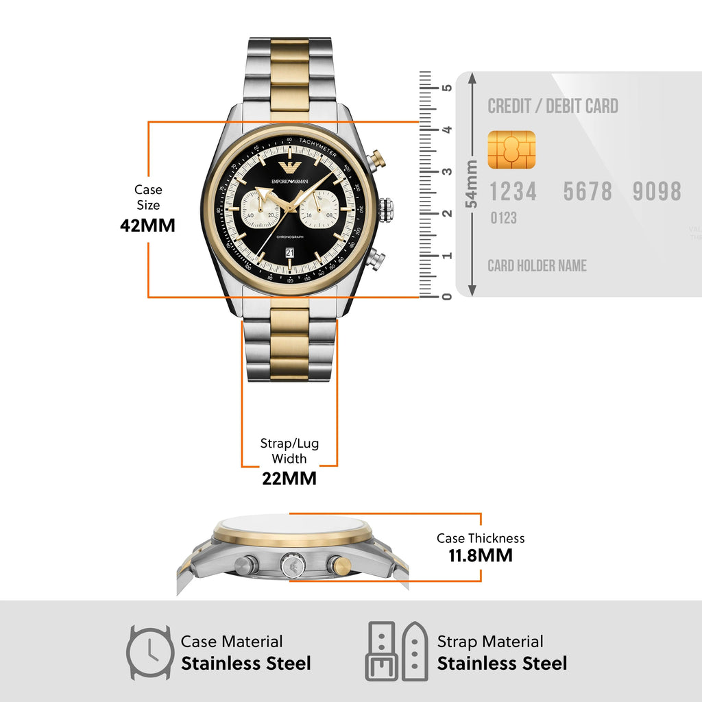 Emporio Armani Racer Chronograph Black Dial Two Tone Steel Strap Watch for Men - AR11678 Buy Now By Emporio Armani