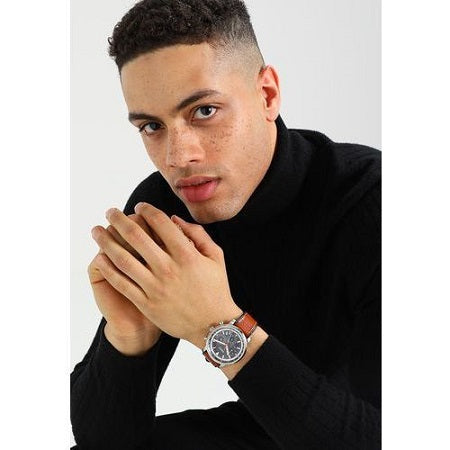 Fossil Goodwin Chronograph Blue Dial Brown Leather Strap Watch for Men - FS5414