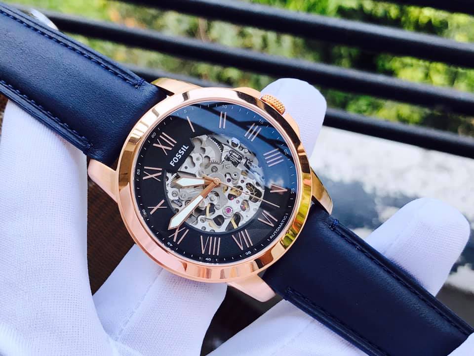 Fossil Grant Automatic Skeleton Blue Dial Blue Leather Strap Watch for Men - ME3102 Buy Now By Fossil