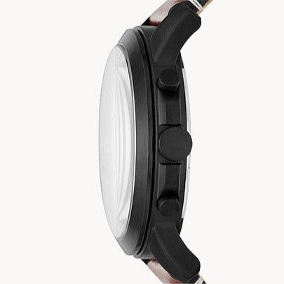 Fossil FS-5241 Grant Luggage Leather Band Men Watch. The case is made out of black stainless steel with a black bezel, which stands for the high quality of the item, it has a black color dial. This model has got 50 meters of water resistance. it can be worn in scenarios where it is likely to be splashed but not immersed in water and will be fine in rain. The watch is shipped with an original box and a guarantee from the manufacturer.