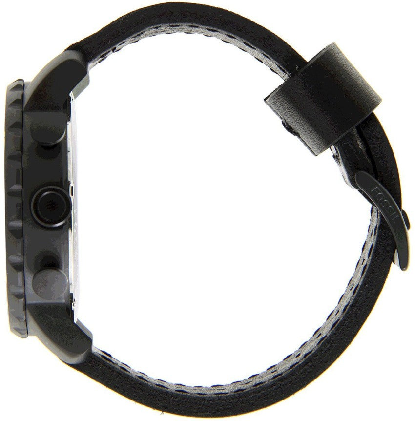 Fossil Nate Chronograph Black Dial Black Leather Strap Watch for Men - JR1354