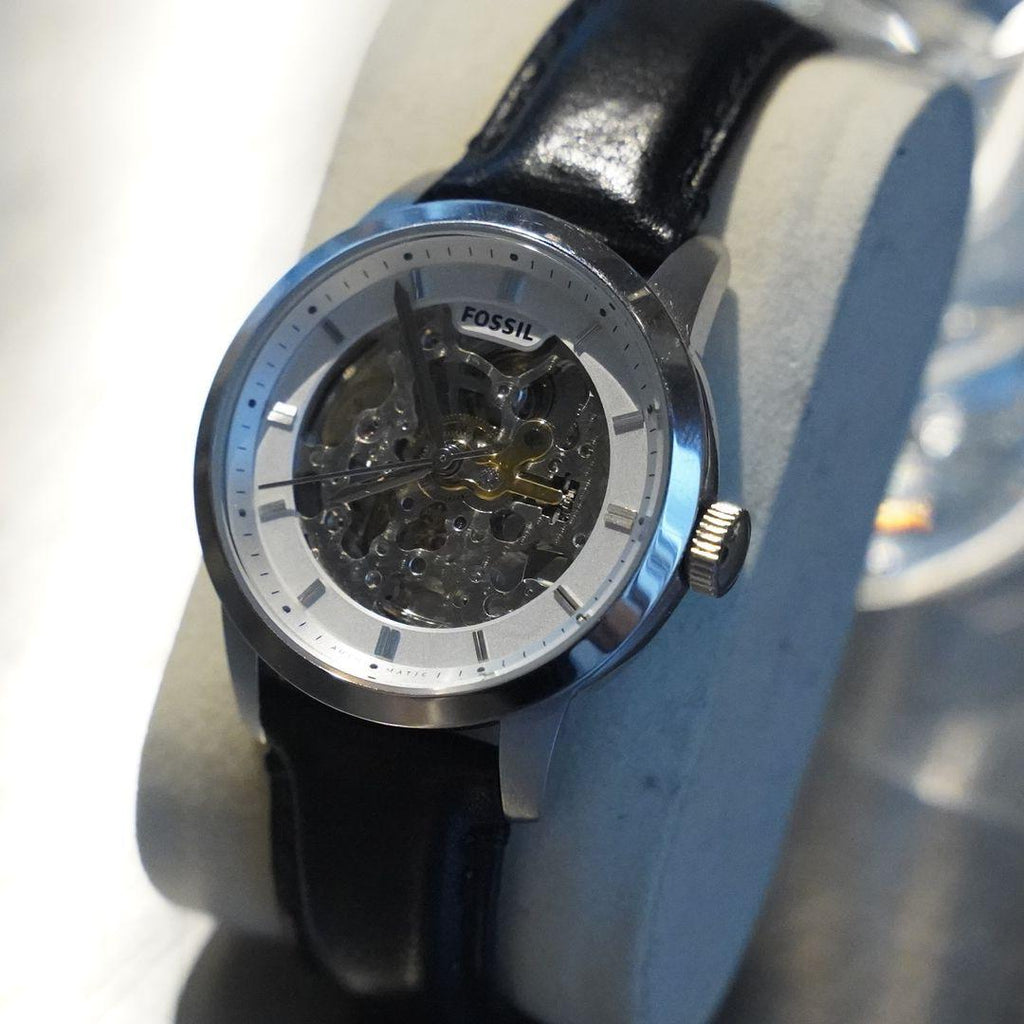 Fossil Townsman Automatic Skeleton White Dial Black Leather Strap Watch for Men - ME3085
