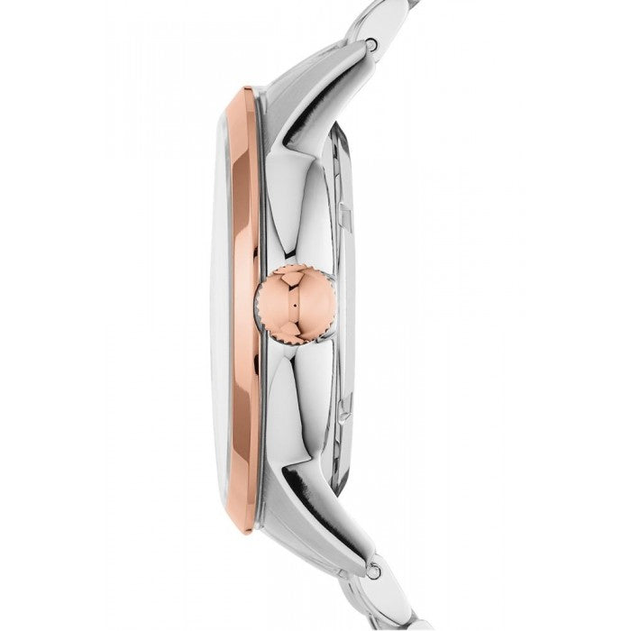 Fossil Townsman Automatic Skeleton White Dial Two Tone Steel Strap Watch for Men - ME3075