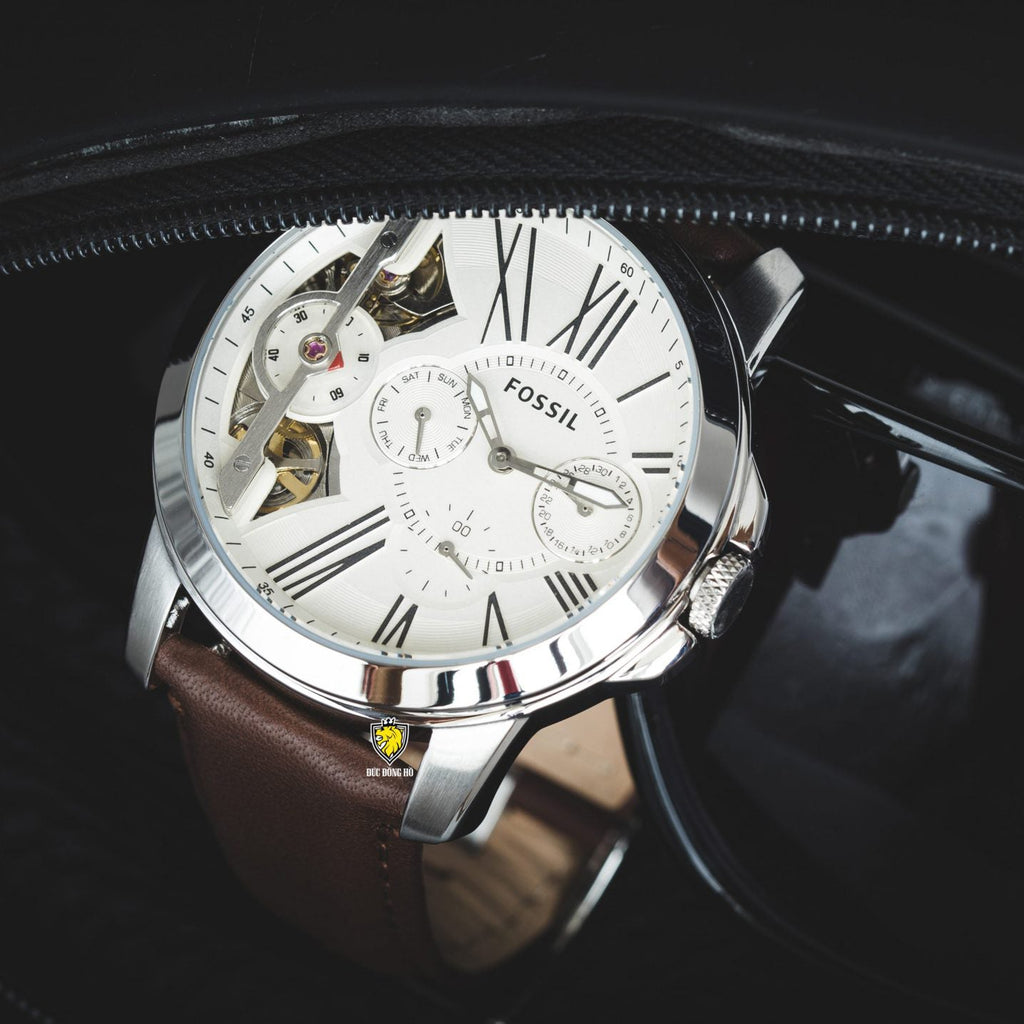 Fossil Grant Twist Multi-Function White Dial Brown Leather Strap Watch for Men - ME1144