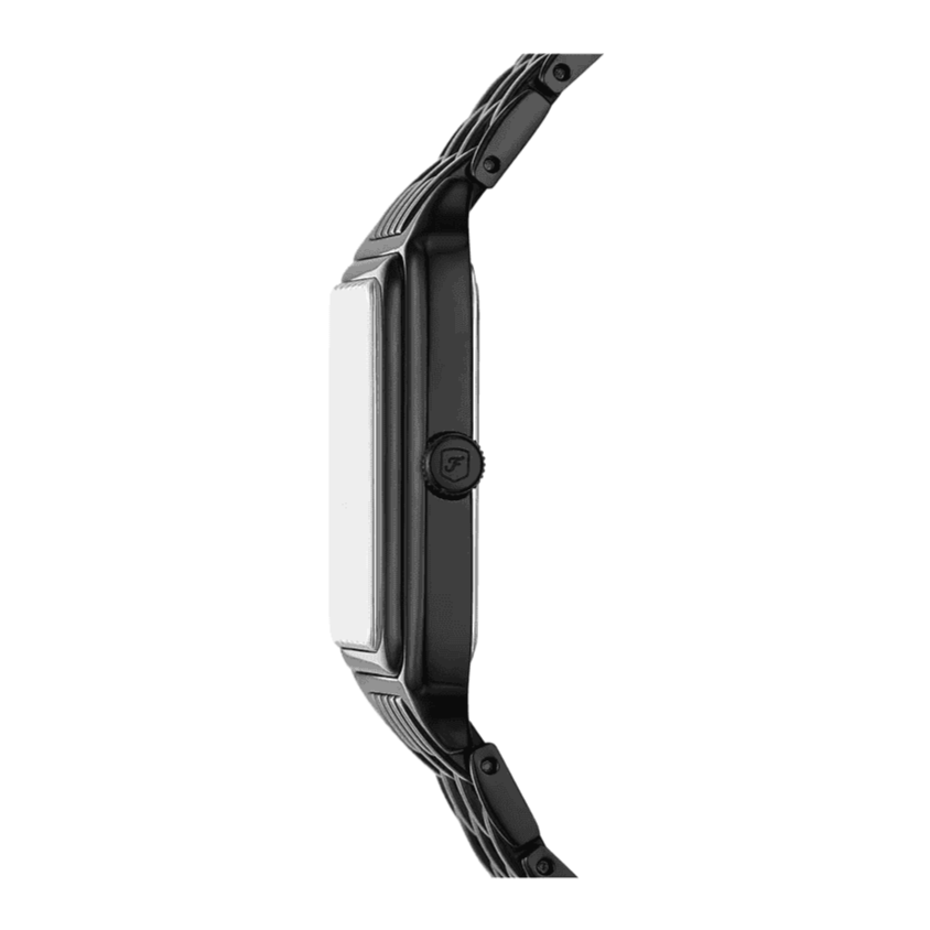 A true icon from our archive, the rectangular Raquel watch is updated with stunning details. Slim and versatile, it features a polished black genuine abalone shell dial, three-hand date movement and a polished black stainless steel seven-link bracelet.