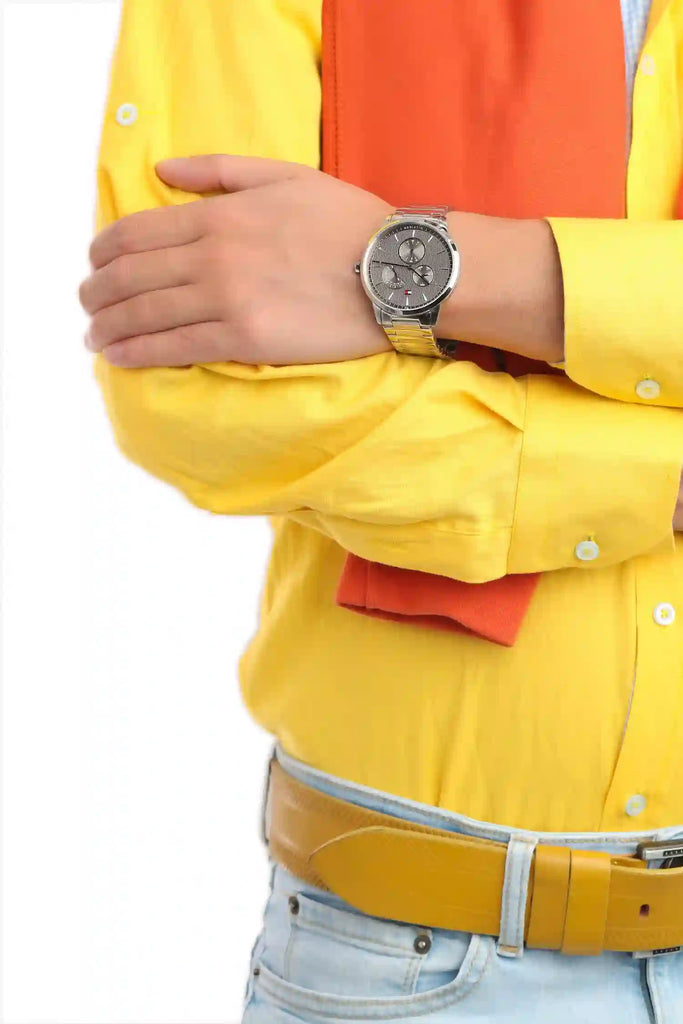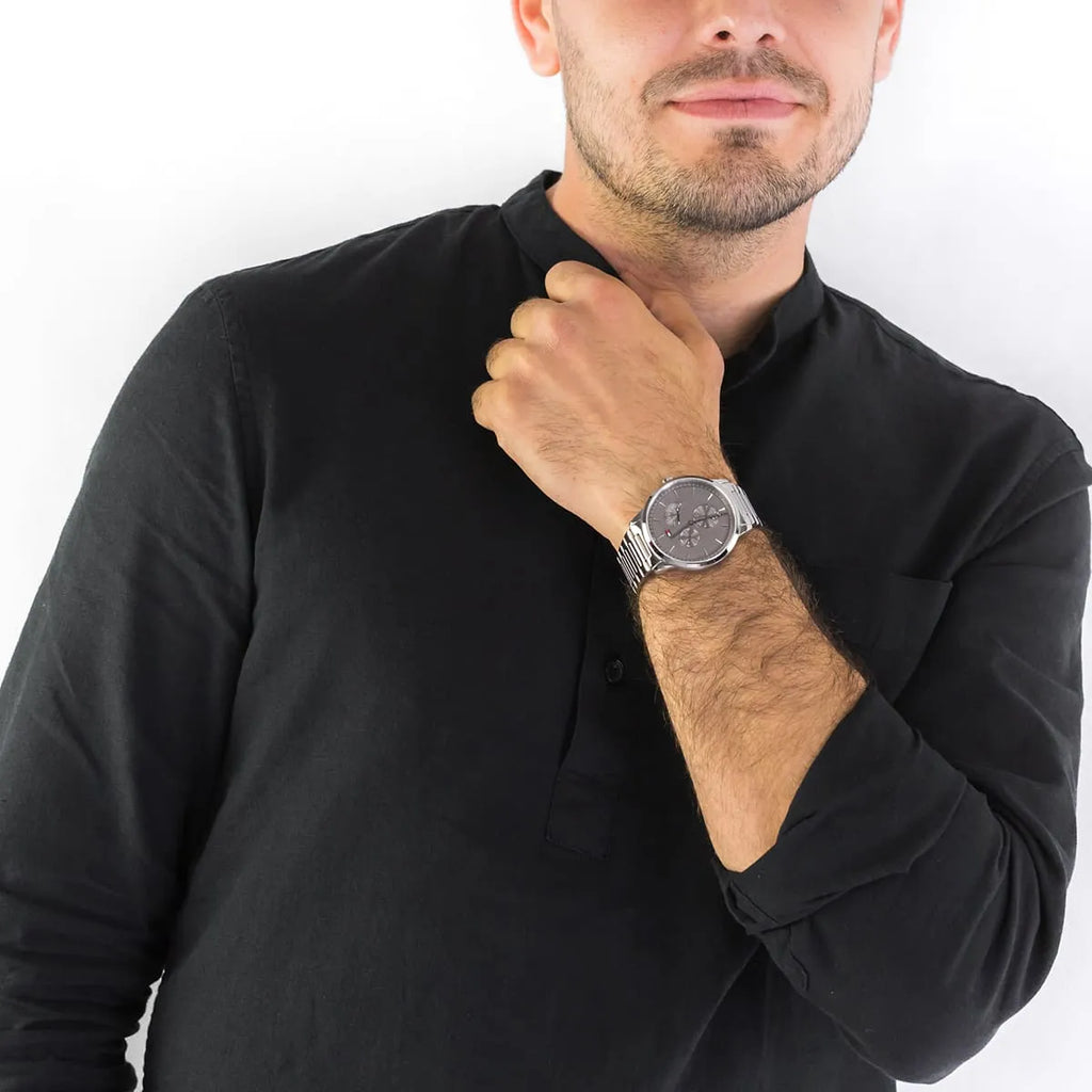Tommy Hilfiger Brad Chronograph Quartz Grey Dial Silver Steel Strap Watch For Men - 1710385