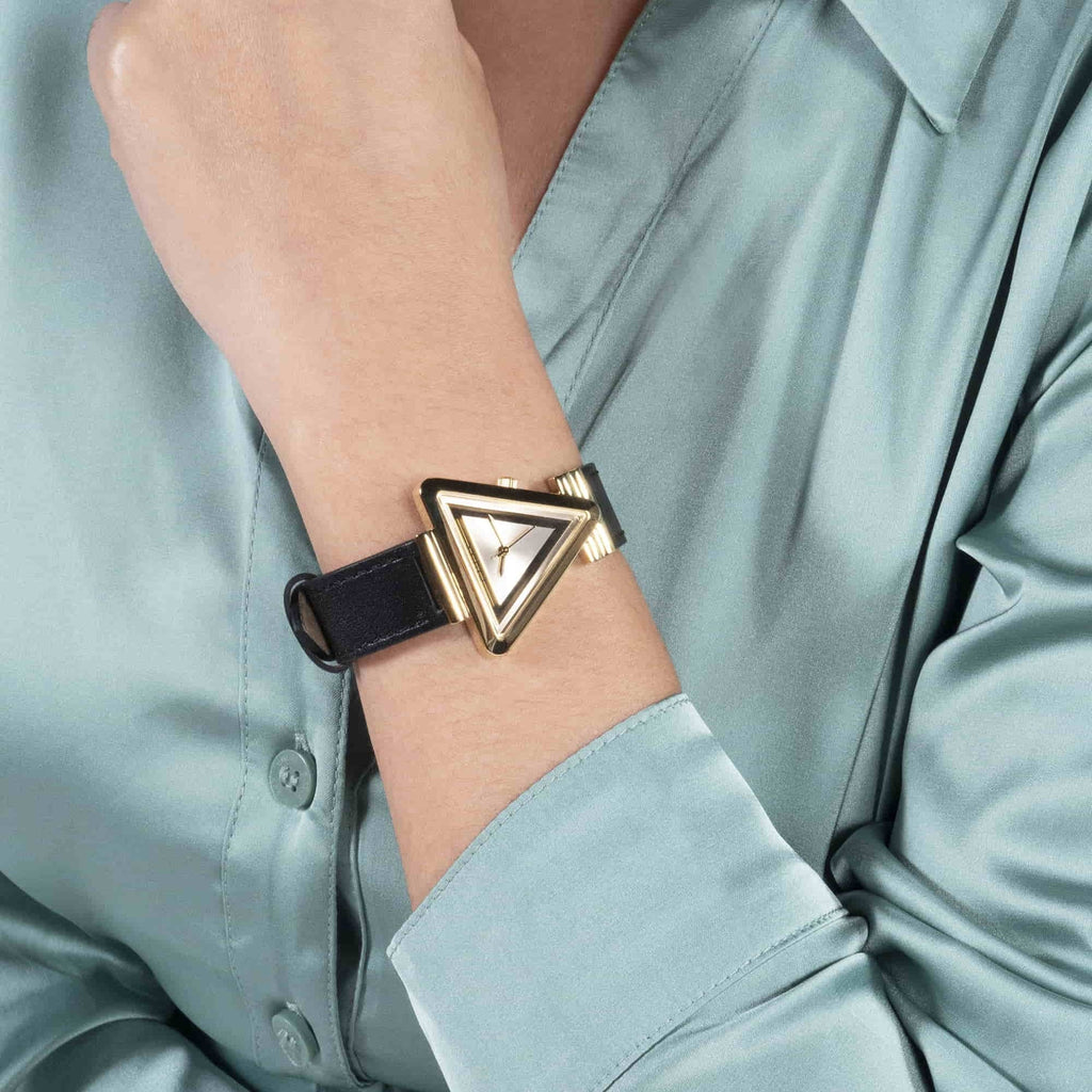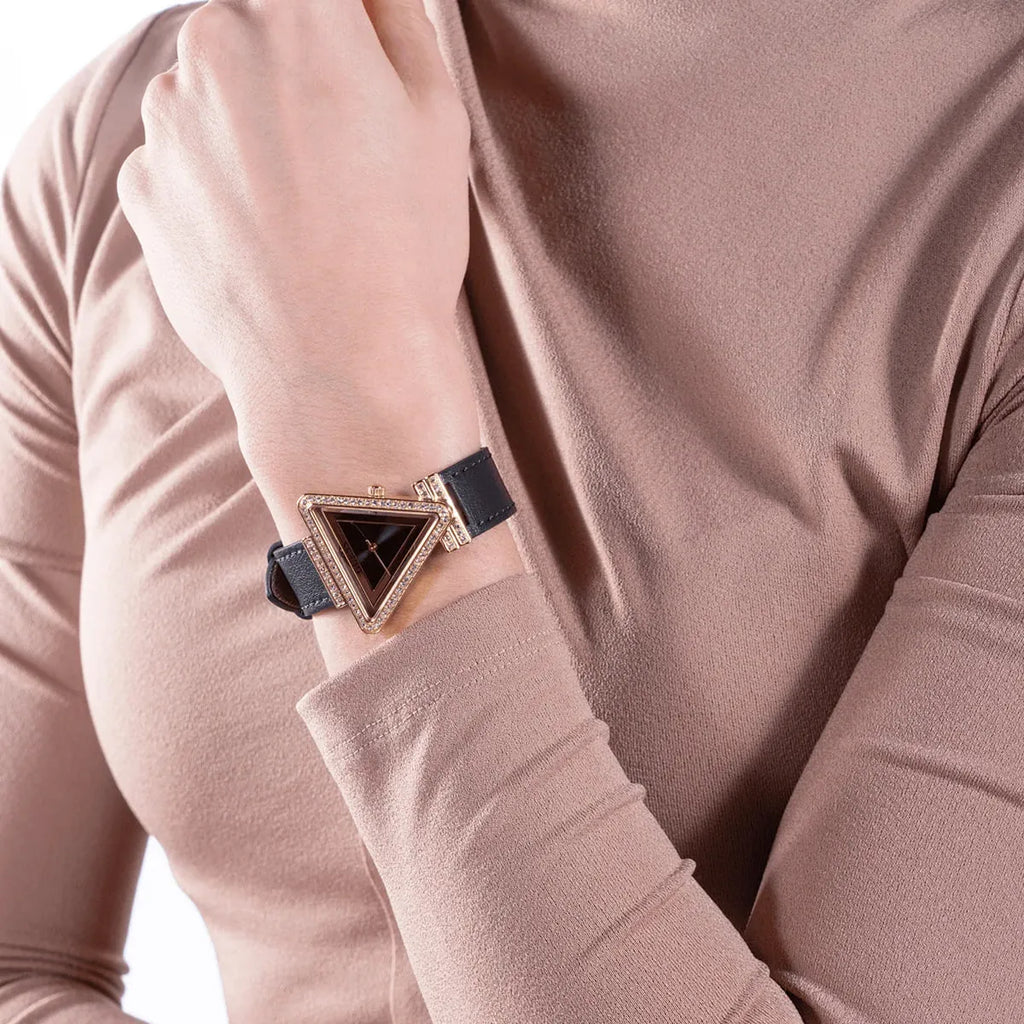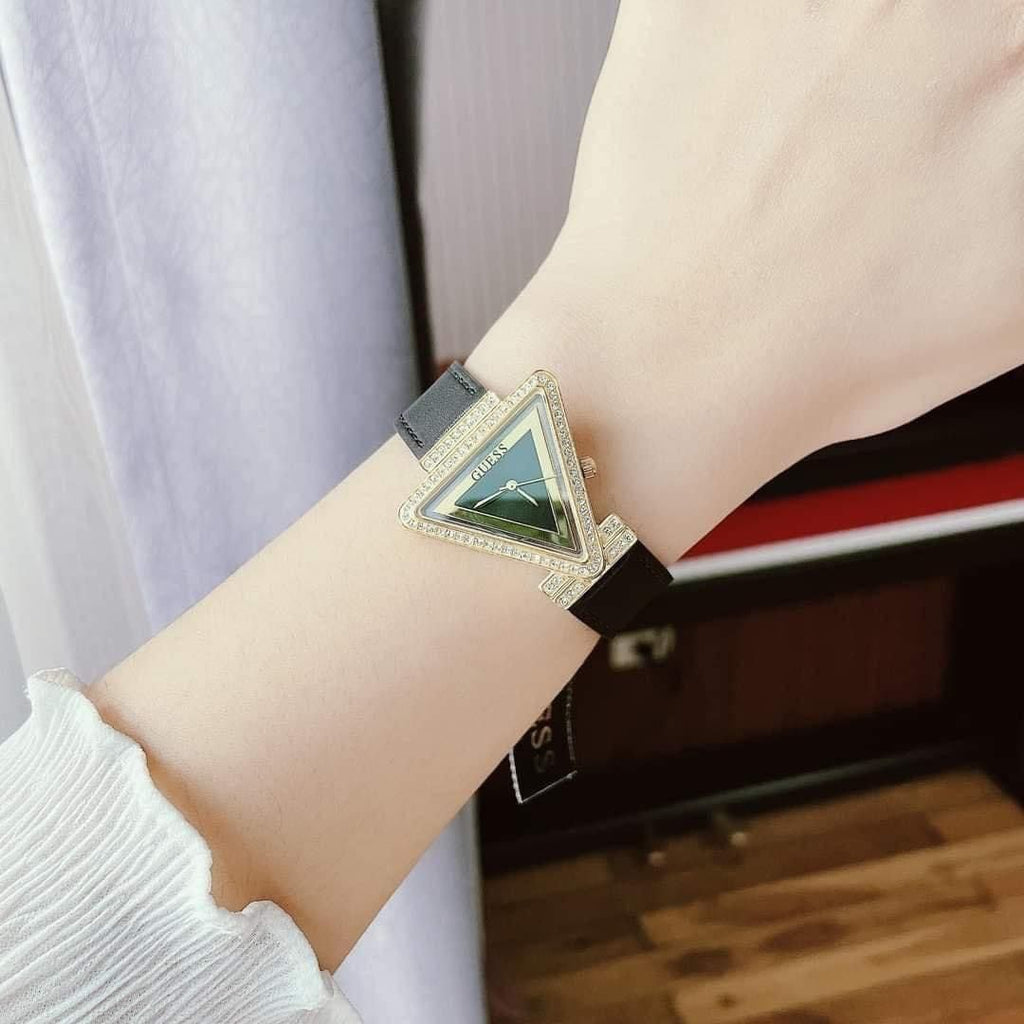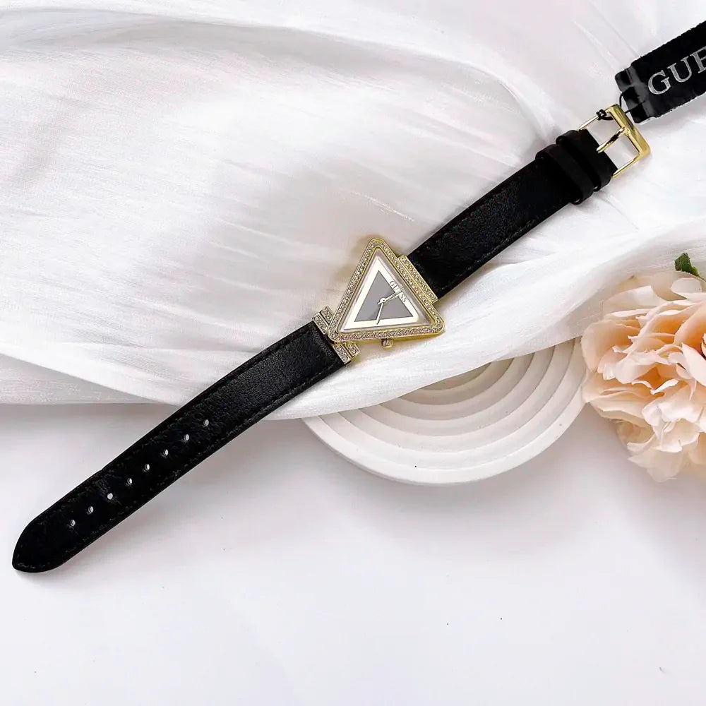 Classy and timeless, the GUESS Women's 34mm Gold PVD Quartz Watch GW0504L5 is a must-have accessory for any fashionista. This gorgeous watch features a stunning gold tone case and rhinestone embellished face, making it perfect for taking your look from day to night. The black dial colour, genuine leather strap, and strap buckle closure add a classic