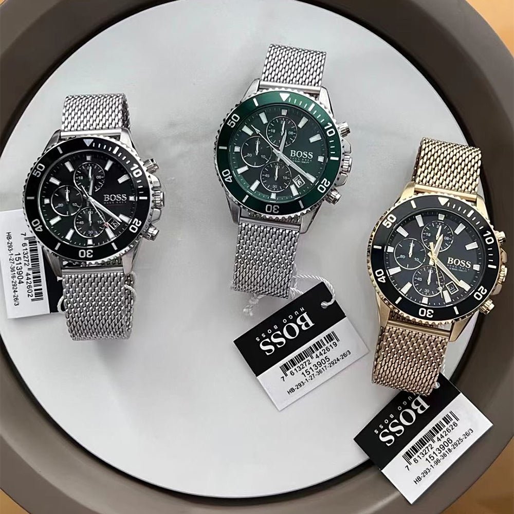 Hugo Boss Admiral Black Dial Silver Mesh Bracelet Watch for Men - 1513904