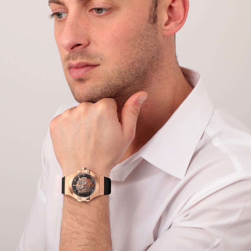 Maserati Potenza Automatic Rose Gold Dial Black Leather Strap Watch For Men - R8821108002 Buy Now By Maserati