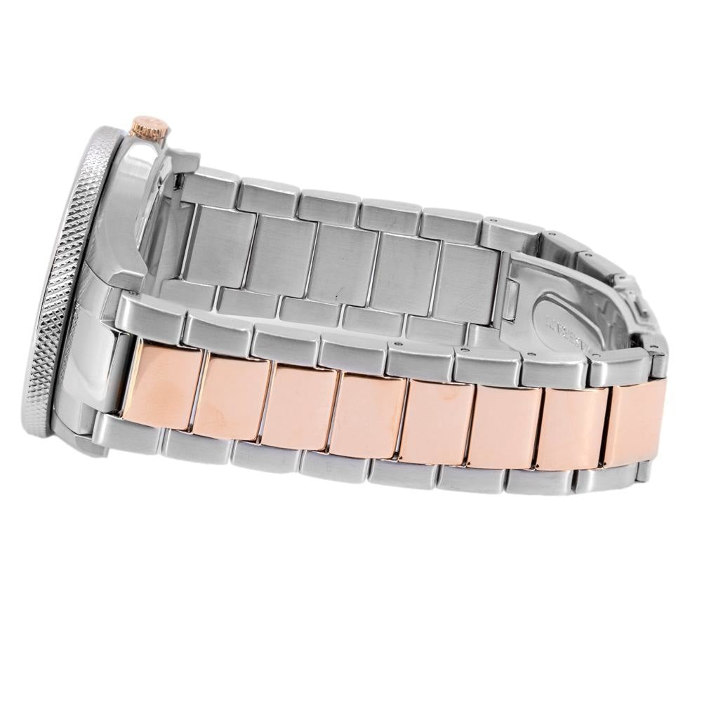 The wristwatch has a rosé gold, silver case, made of stainless steel, which looks like a real eye-catcher thanks to the matted, polished surface.