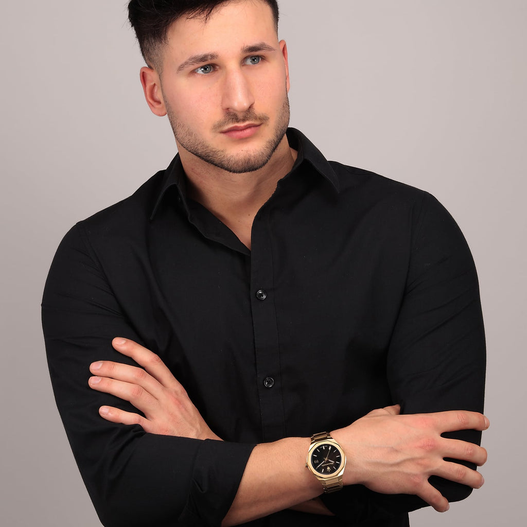 Maserati Stile Black Dial Gold Steel Strap Watch For Men - R8853142004 Buy Now By Maserati