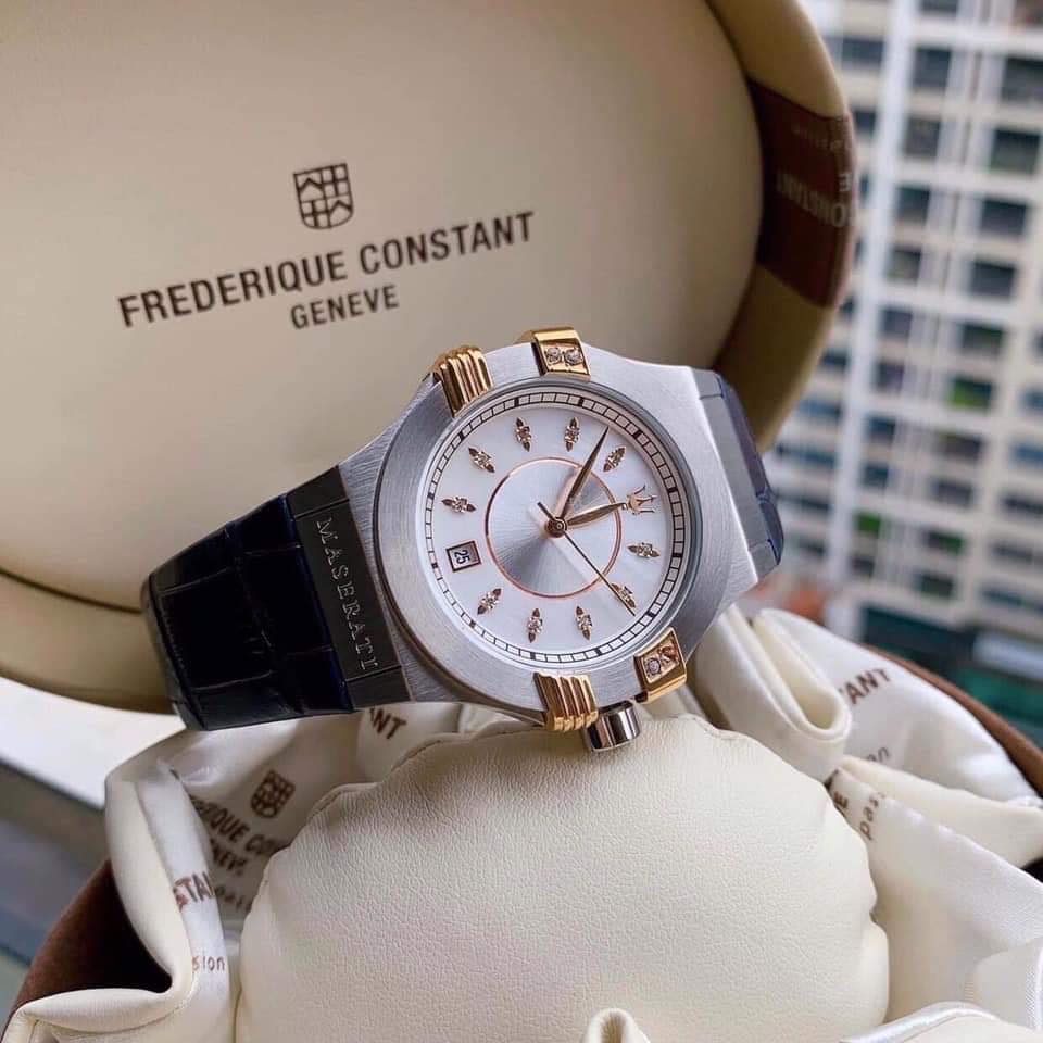 Maserati Potenza Diamonds Silver Dial Blue Leather Strap Watch For Women - R8851108502