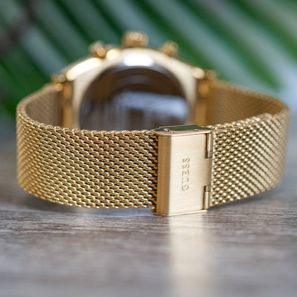 Guess Continental Chronograph Black Dial Gold Mesh Strap Watch For Men - GW0582G2 Buy Now By Guess