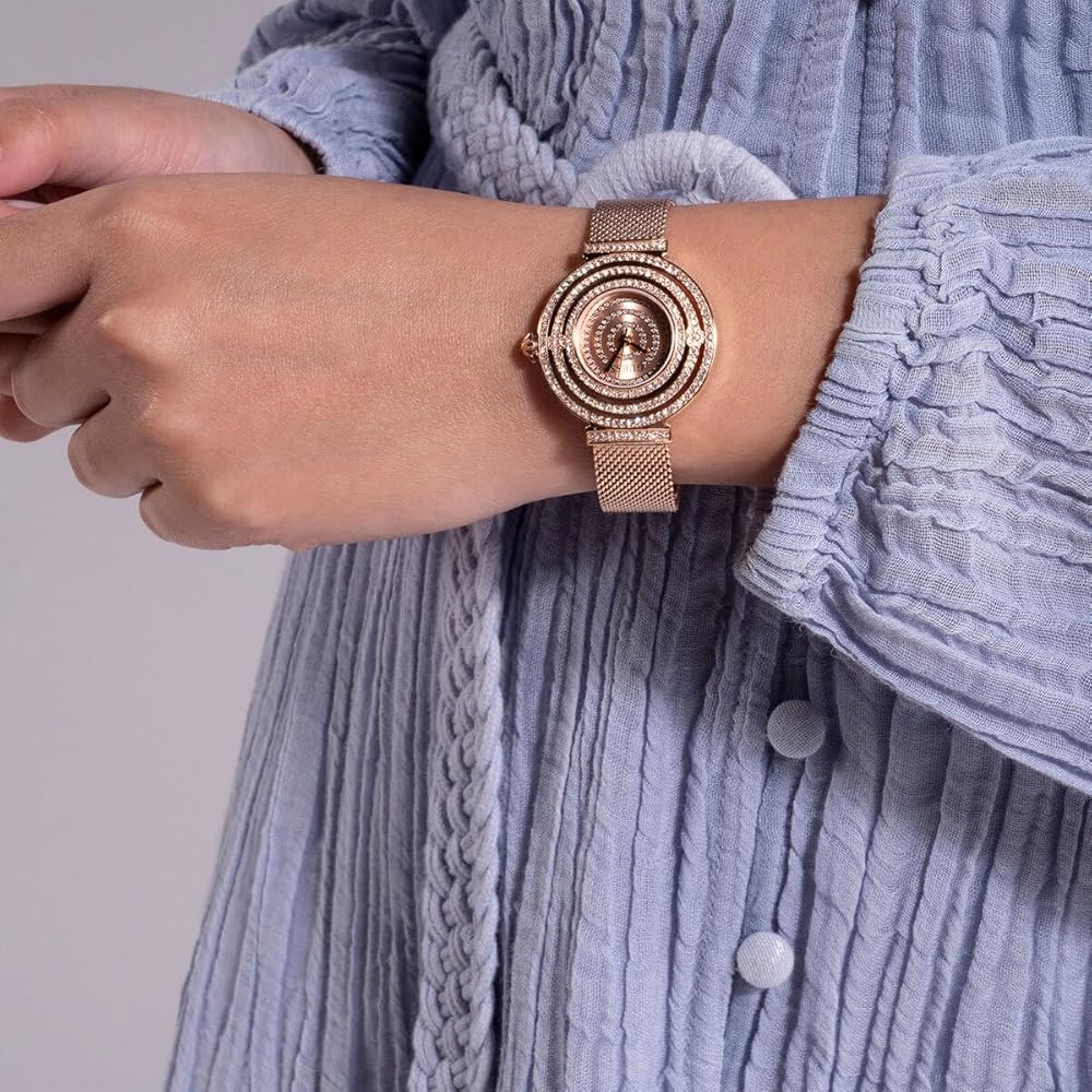 Guess Dream Crystals Rose Gold Dial Rose Gold Mesh Bracelet Watch For Women - GW0550L3