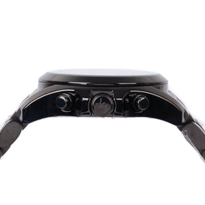 Sable-plated stainless steel case and bracelet. Fixed sable-plated bezel. Sable dial with rose gold-tone hands and alternating Roman numeral and index hour markers. Minute markers around the outer rim. Dial Type: Analog. Date display at the 6 o'clock position. Chronograph...