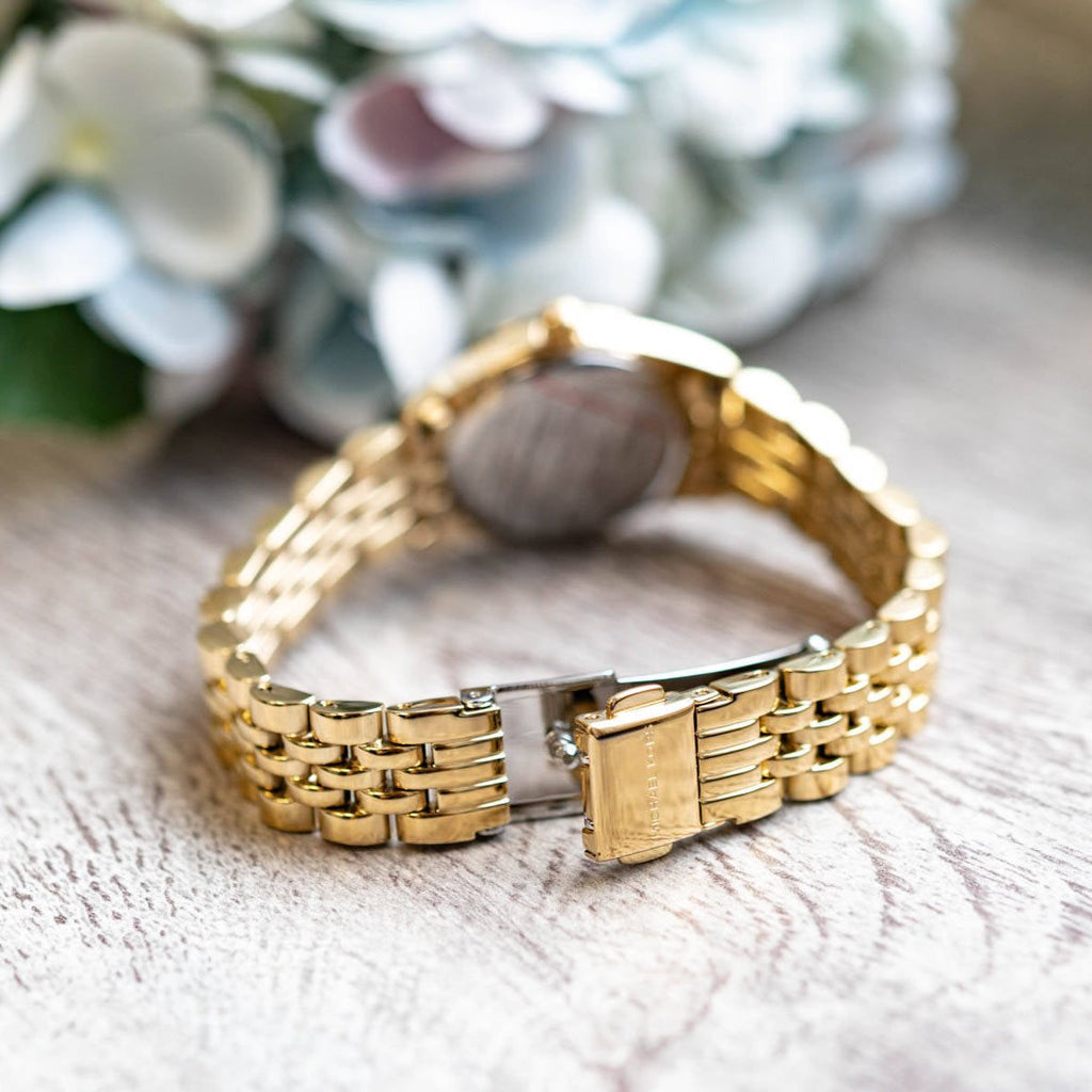 • The watch is scured using a gold-tone stainless steel bracelet.