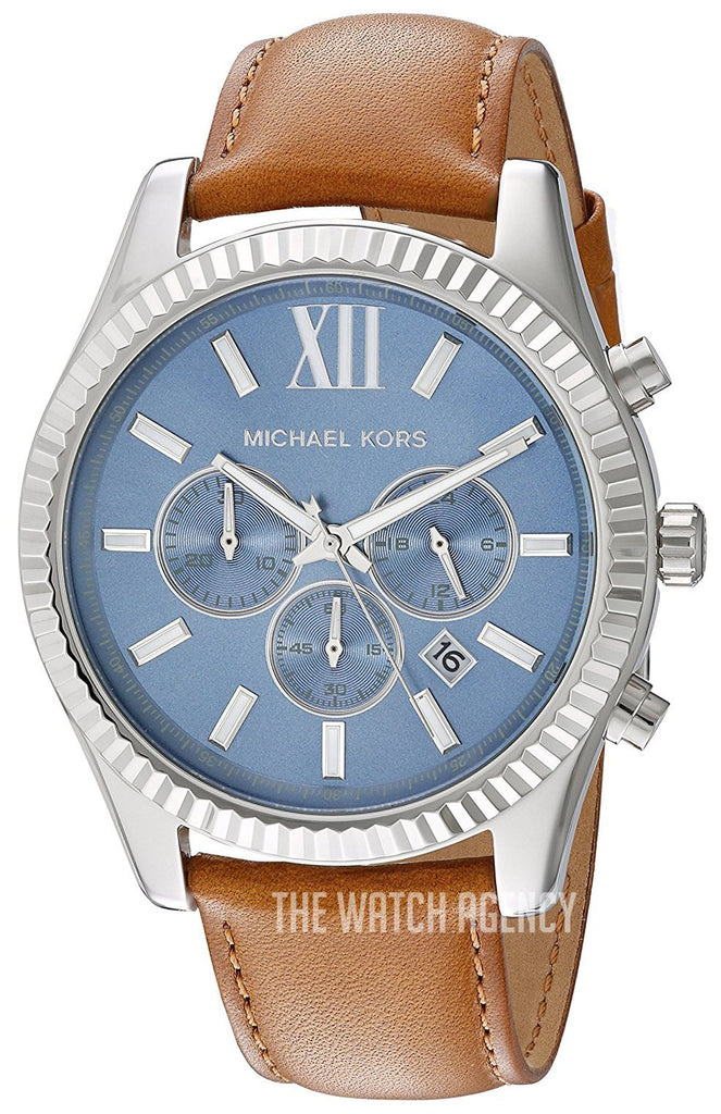 Michael Kors Lexington Chronograph Blue Dial Brown Leather Strap Watch For Men - MK8537