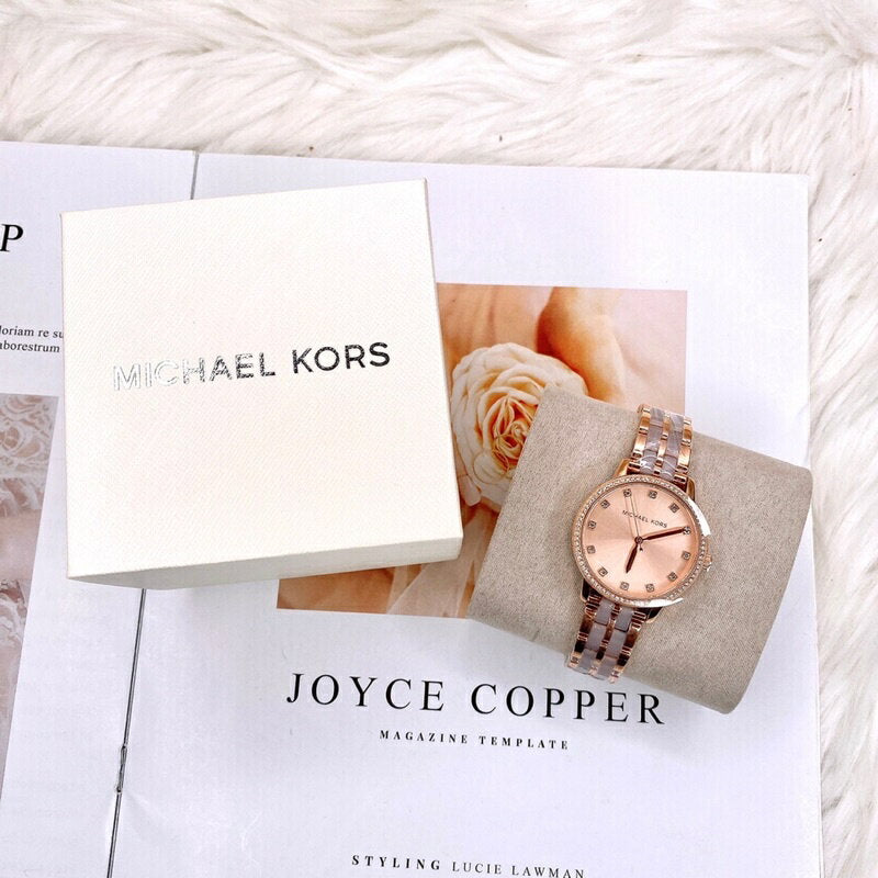 A little glam, a little girl-next-door MK's Melissa watch delivers standout style without going over the top. A pave-embellished bezel lends look-at-me flair, while the radiant rose gold tone bracelet strap renders this timepiece exceptionally elegant.