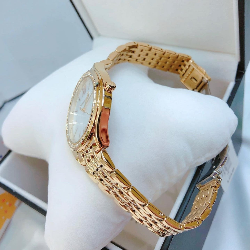 Michael Kors Mindy Three Hand White Dial Rose Gold Steel Strap Watch for Women - MK7078