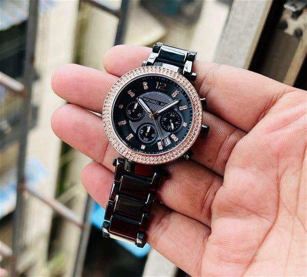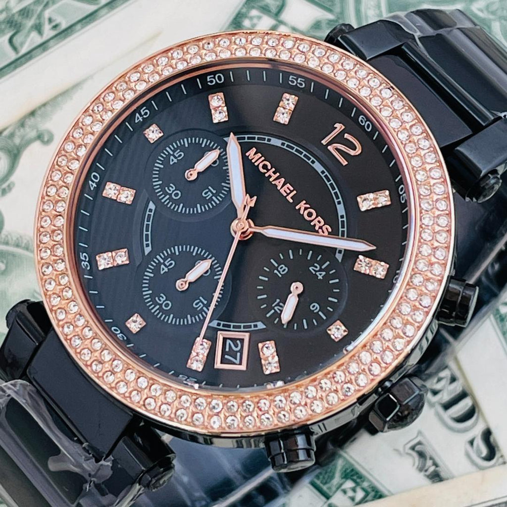 Michael Kors Parker Diamonds Black Dial Black Steel Strap Watch for Women - MK5885