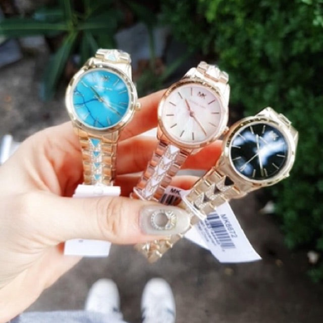 Michael Kors Petite Runway Mercer Blue Dial Gold Steel Strap Watch For Women - MK6673 Buy Now By Michael Kors
